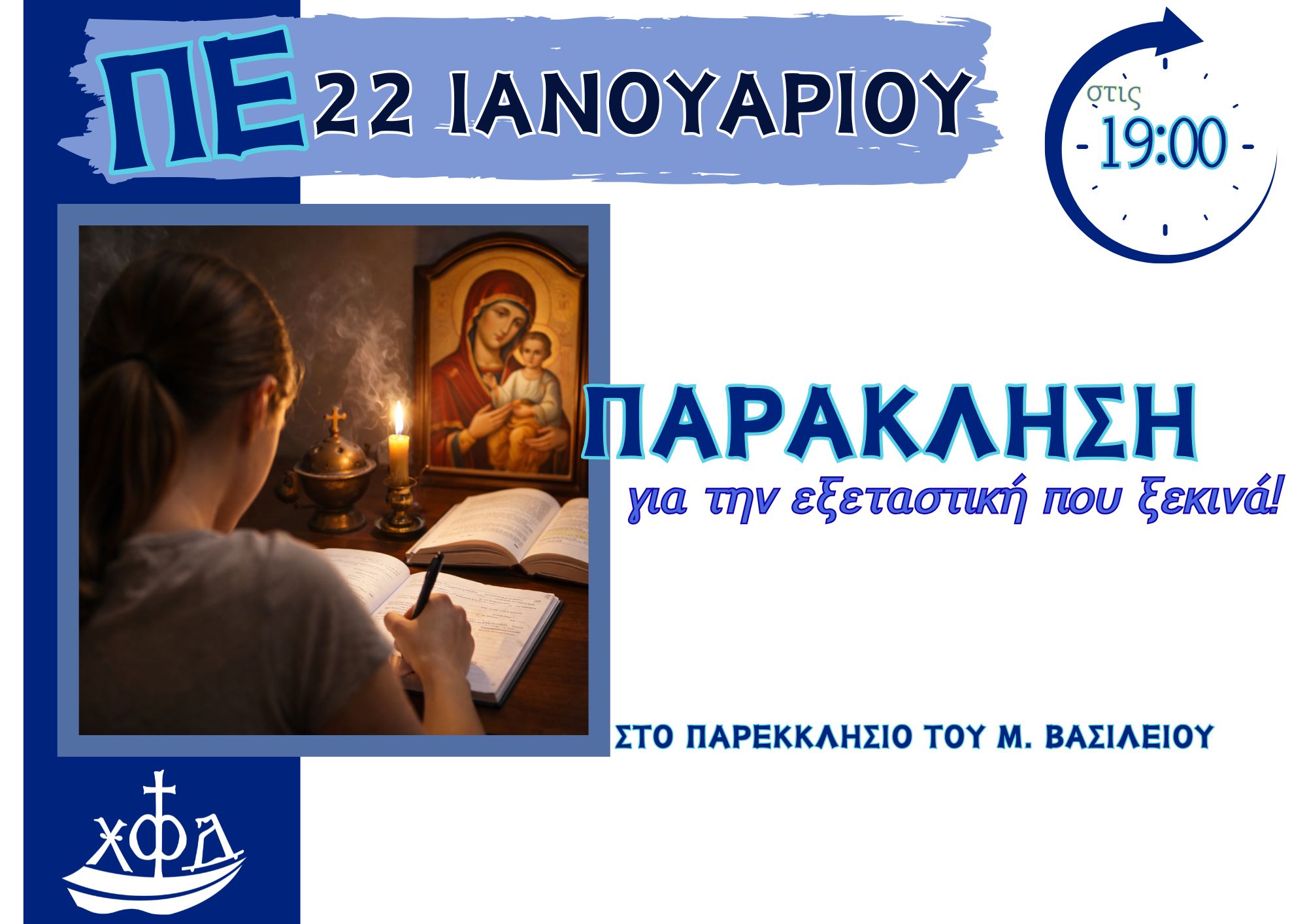 ΑνακοινώσειςΑθήνα Παράκληση για την εξεταστική Από φοιτήτριες - Αθήνα - 19 Ιανουαρίου 2026 0 357 Εκτύπωση (καμία αξιολόγηση προς το παρόν) Loading... “Διαβάζουμε μαζί!” Την Πέμπτη 22 Ιανουαρίου το εντευκτήριο μας θα είναι ανοιχτό ως αναγνωστήριο. Στις 19:00 θα γίνει Παράκληση για τις εξετάσεις. Έλα μαζί με τα βιβλία σου!