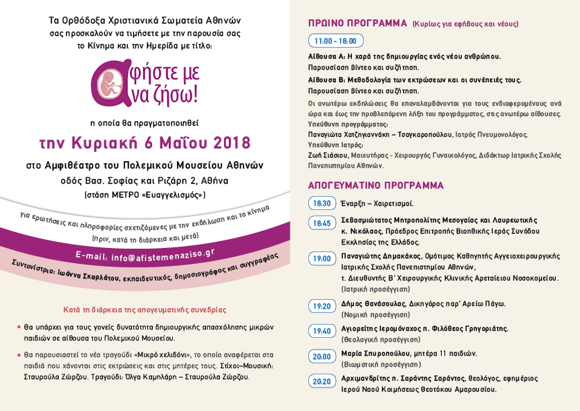 ΗΜΕΡΙΔΑ υπέρ της ζωής και εναντίον των εκτρώσεων
