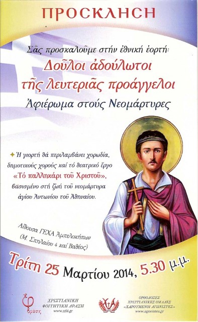 Η Χριστιανική Φοιτητική Δράση και οι Χαρούμενοι Αγωνιστές Αθηνών, σας προσκαλούν στην εθνική εορτή:
