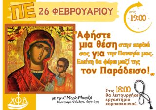 Την Πέμπτη 26 Φεβρουαρίου στις 19:00, στο εντευκτήριό μας: