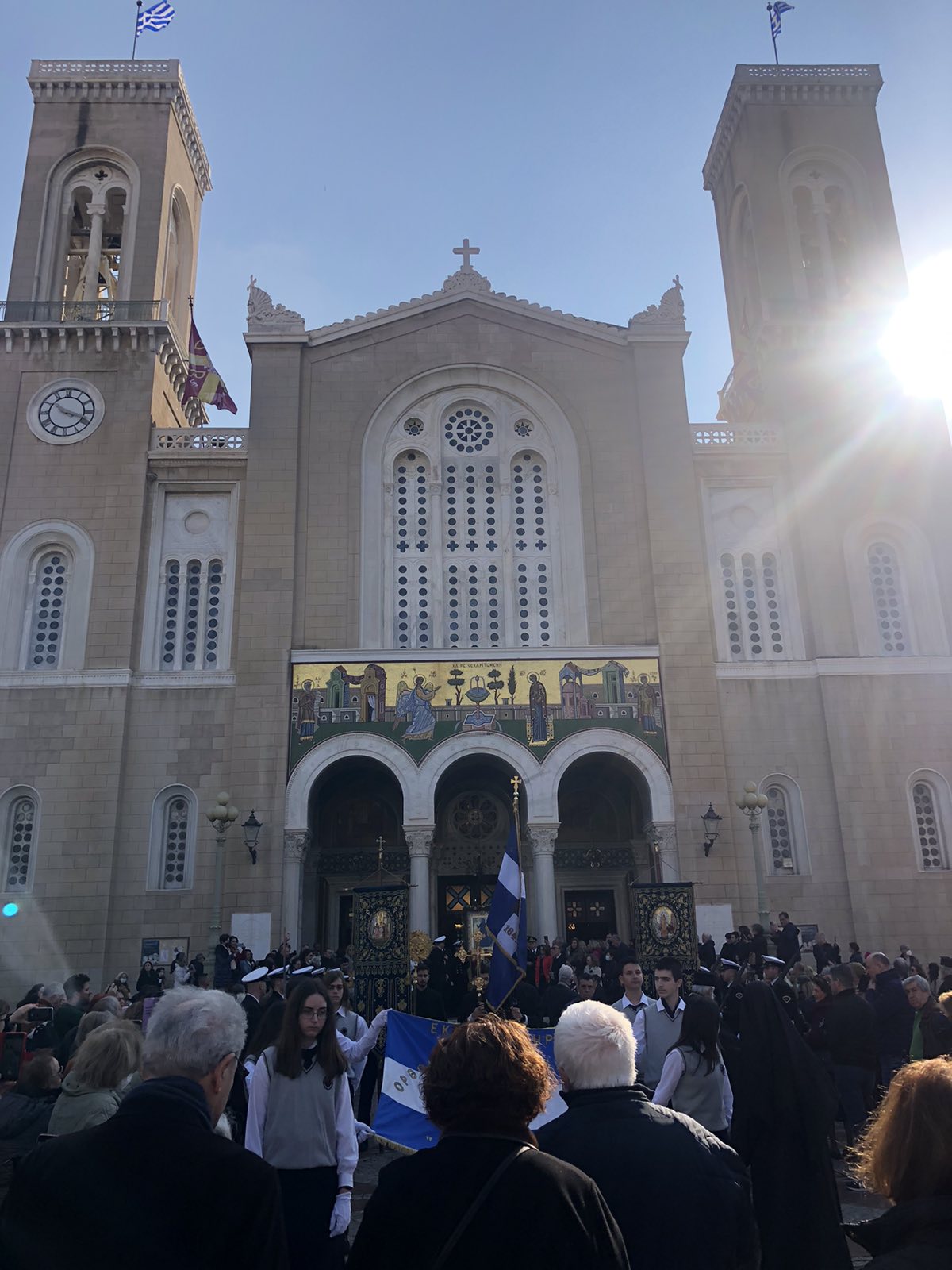… Κάτω από τον λαμπρό Αθηναϊκό ήλιο και με κάθε επισημότητα, γιόρτασε και σήμερα η πρωτεύουσα την Κυρά της ,με Αρχιερατική Θεία Λειτουργία και περιφορά της τιμίας εικόνας και του ιερού σκηνώματος της. Η Αγία περπάτησε ξανά στους δρόμους που γεννήθηκε, έζησε και προσέφερε!