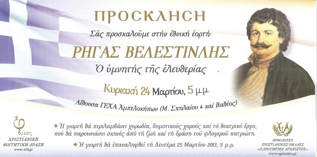 Η Χριστιανική Φοιτητική Δράση και οι Χαρούμενοι Αγωνιστές Αθηνών, σας προσκαλούν στην εθνική εορτή: