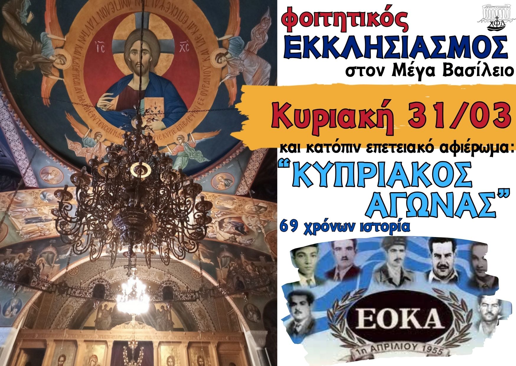 Την τελευταία ημέρα του Μαρτίου, μετά τον κυριακάτικο φοιτητικό εκκλησιασμό μας στο παρεκκλήσιο του Μεγάλου Βασιλείου (Μαυρομιχάλη 32 στην Αθήνα), θα έχουμε την ευκαιρία να παρακολουθήσουμε ένα επετειακό αφιέρωμα στην σύγχρονη ιστορία μας: