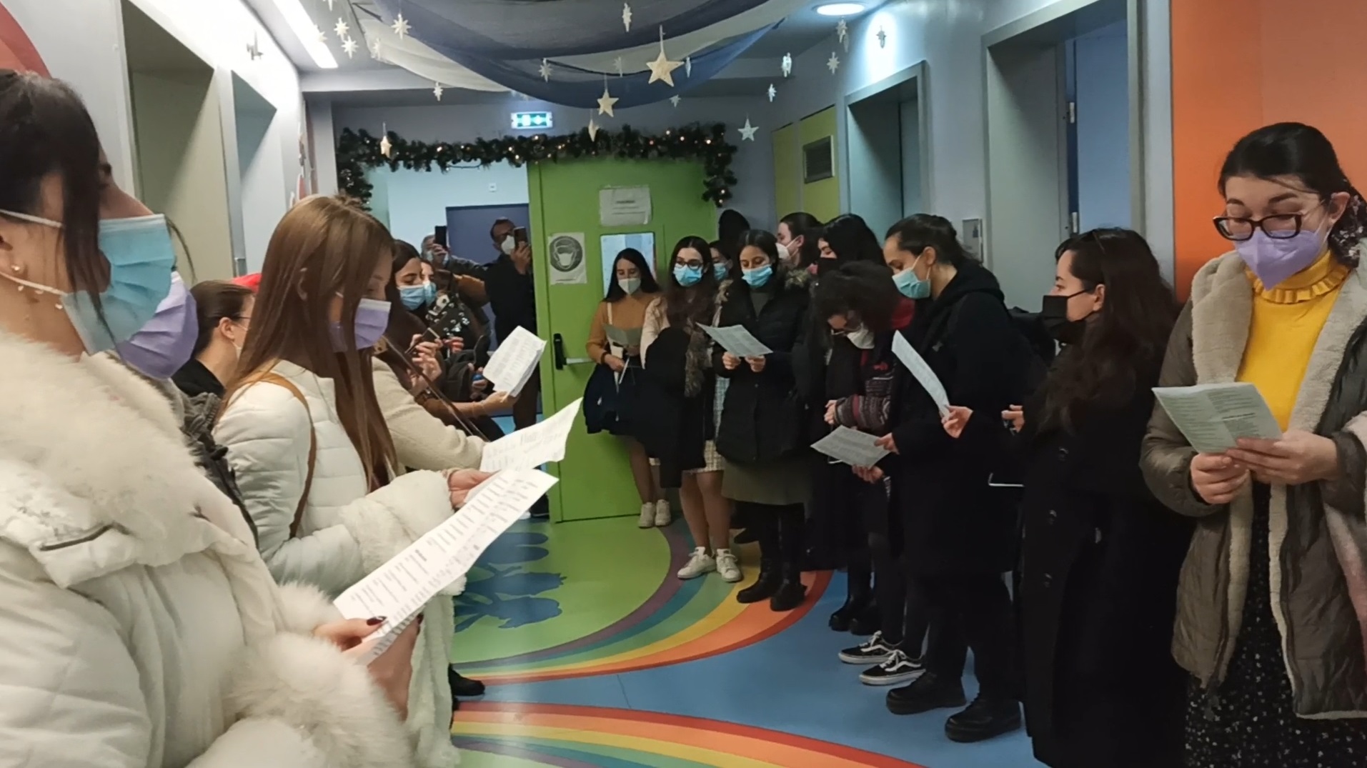Αυτή τη φορά ήταν οι φοιτήτριες αυτές που έλεγαν τα κάλαντα στους νοσηλευόμενους μικρούς ασθενείς του Νοσοκομείου Παίδων «Αγλαΐα Κυριακού». Με ενθουσιασμό, με χορωδία αυθόρμητα πολυφωνική, με μουσικά όργανα, με μικρά τριγωνάκια-δώρα στα παιδιά (που δεν έχασαν την ευκαιρία να ενισχύσουν την ορχήστρα της Χριστιανικής Φοιτητικής Δράσης), με χριστουγεννιάτικες κάρτες που σκόρπισαν μήνυμα ελπίδας από την πρώτη ως την τελευταία παιδιατρική κλινική… Μα πάνω από όλα με βαθιά συναίσθηση ότι λίγο απέχει η κατάσταση επισκέπτη αγάπης με νοσηλευόμενου. Προσωρινό στιγμιότυπο το σε ποια πλευρά βρέθηκε ο καθένας μας εκείνο το δεκεμβριάτικο απόγευμα. Σταθερή όμως ήταν και μένει η αλήθεια της γέννησης του Χριστού που χαρίζει ελπίδα σε στιγμές μουντές και πονεμένες.