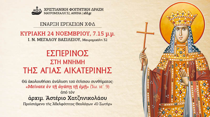 Στην συνέχεια, στις 19:15 θα ακολουθήσει η επίσημη έναρξη εργασιών της Χ.Φ.Δ. με Εσπερινό στο παρεκκλήσιο του Μεγάλο Βασιλείου.