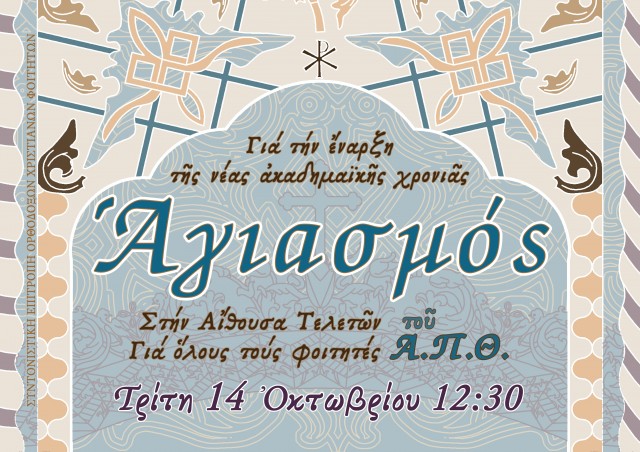 Την Τρίτη 14 Οκτωβρίου στις 12.30 μ.μ. θα τελεστεί Αγιασμός στην Αίθουσα Τελετών