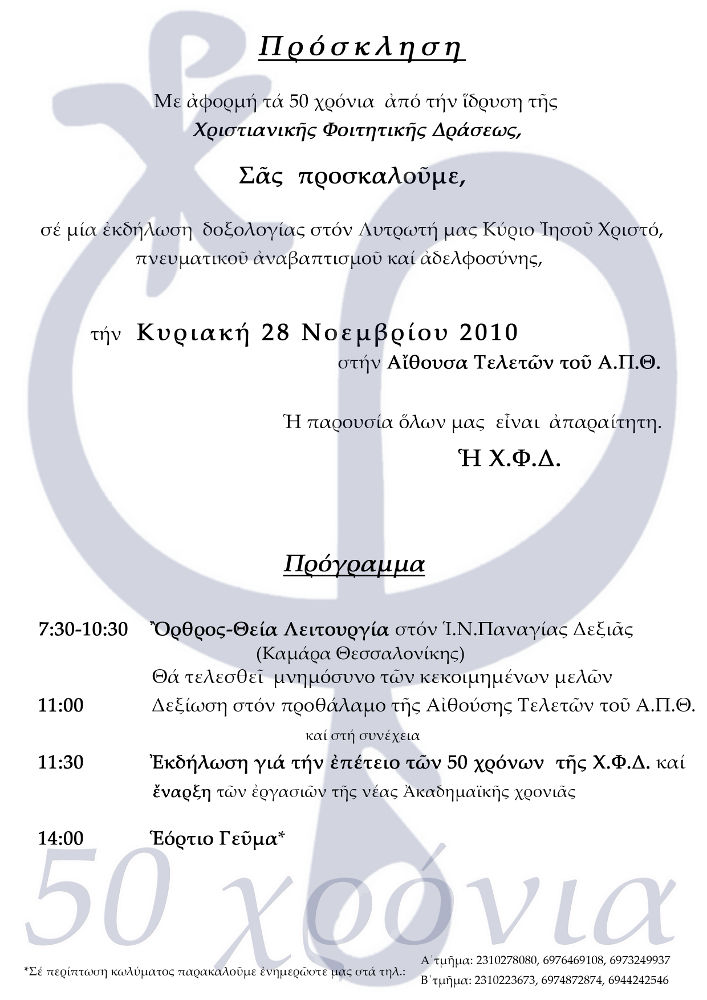 Με αφορμή τα 50 χρόνια από την ίδρυση της Χριστιανικής Φοιτητικής Δράσης,