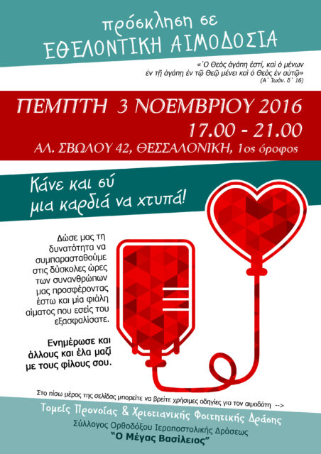 ΑνακοινώσειςΘεσσαλονίκη Εθελοντική Αιμοδοσία στο Εντευκτήριο. Από Θεσσαλονίκη - 31 Οκτωβρίου 2016 0 532 Εκτύπωση (καμία αξιολόγηση προς το παρόν) Loading...