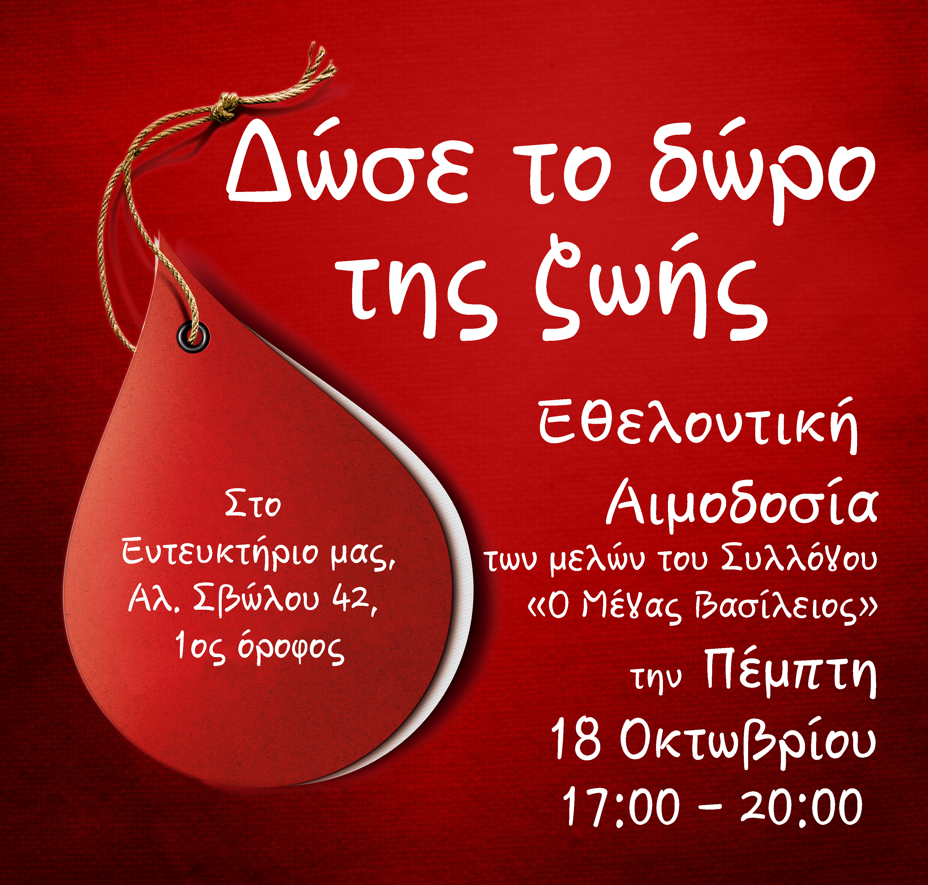 ΑνακοινώσειςΘεσσαλονίκη Εθελοντική αιμοδοσία στο Εντευκτήριο. Από φοιτητές & φοιτήτριες - Θεσσαλονίκη - 1 Οκτωβρίου 2018 0 869 Εκτύπωση (καμία αξιολόγηση προς το παρόν) Loading...