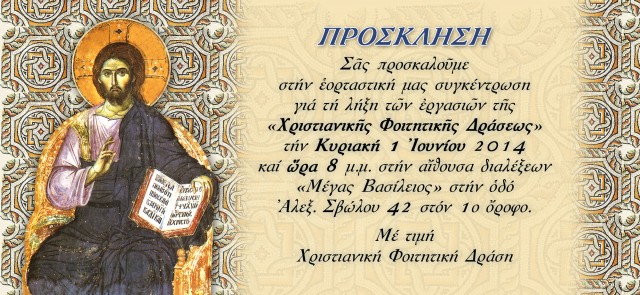 ΑνακοινώσειςΘεσσαλονίκη Εορτή λήξης των εργασιών της Χ.Φ.Δ. Από Θεσσαλονίκη - 26 Μαΐου 2014 0 523 Εκτύπωση (καμία αξιολόγηση προς το παρόν) Loading...