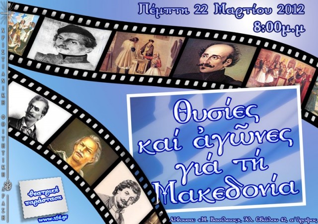 H Χ.Φ.Δ. Θεσσαλονίκης τιμώντας τη γη των προγόνων μας και όσους πλήρωσαν με ασύλληπτες ηρωικές θυσίες το τίμημα τη λευτεριάς, μας προσκαλεί όλες σε μια εκδήλωση εθνικού αναβαπτισμού, η οποία θα ζωντανέψει μέσα από τη θεατρική σκηνή το διαχρονικό μεγαλείο της Μακεδονίας.