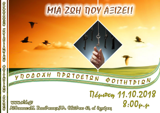 ΑνακοινώσειςΘεσσαλονίκη Καλωσορίζουμε τις πρωτοετείς στην ΧΦΔ! Από φοιτήτριες - Θεσσαλονίκη - 8 Οκτωβρίου 2018 0 985 Εκτύπωση (1 ψήφοι, μέσος όρος: 5,00 από 5) Loading...