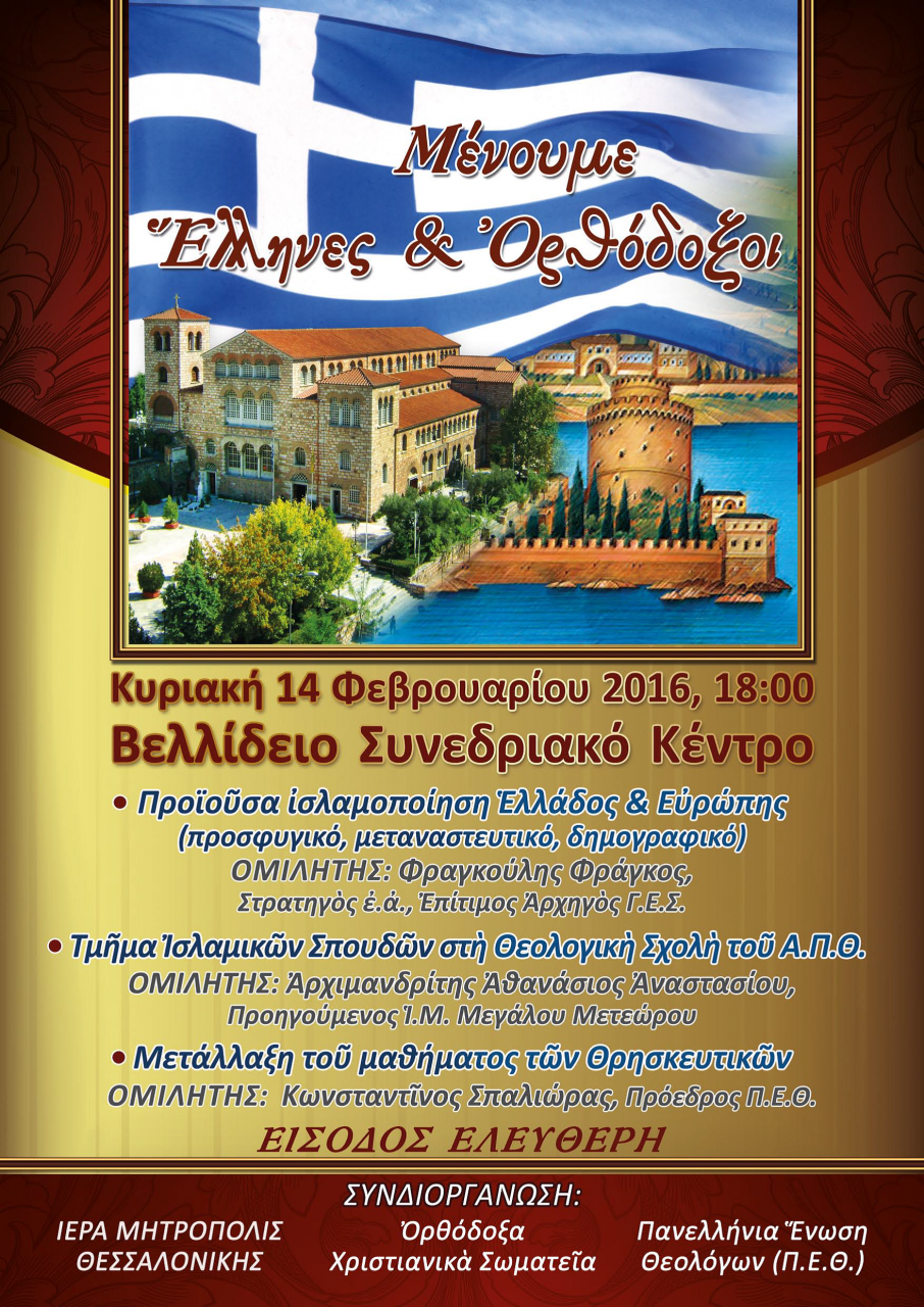 «Μένουμε Ἕλληνες καί Ὀρθόδοξοι».