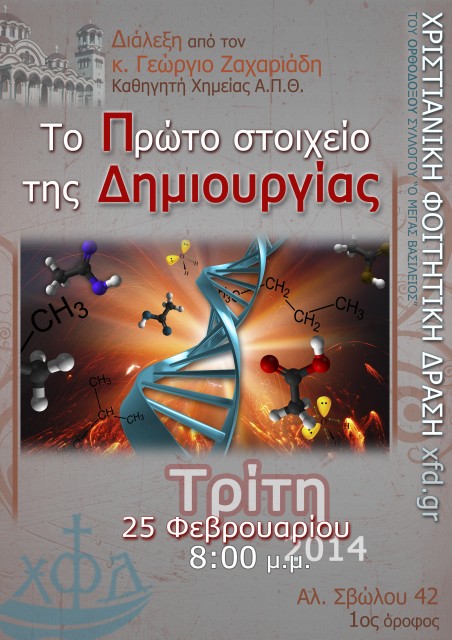 Την Τρίτη 25 Φεβρουαρίου και ώρα 8.00 μ.μ. οι φοιτητές της Χ.Φ.Δ. Θεσσαλονίκης θα έχουμε την ευκαιρία να συμμετάσχουμε στη διάλεξη που θα πραγματοποιηθεί από τον κ. Γεώργιο Ζαχαριάδη
