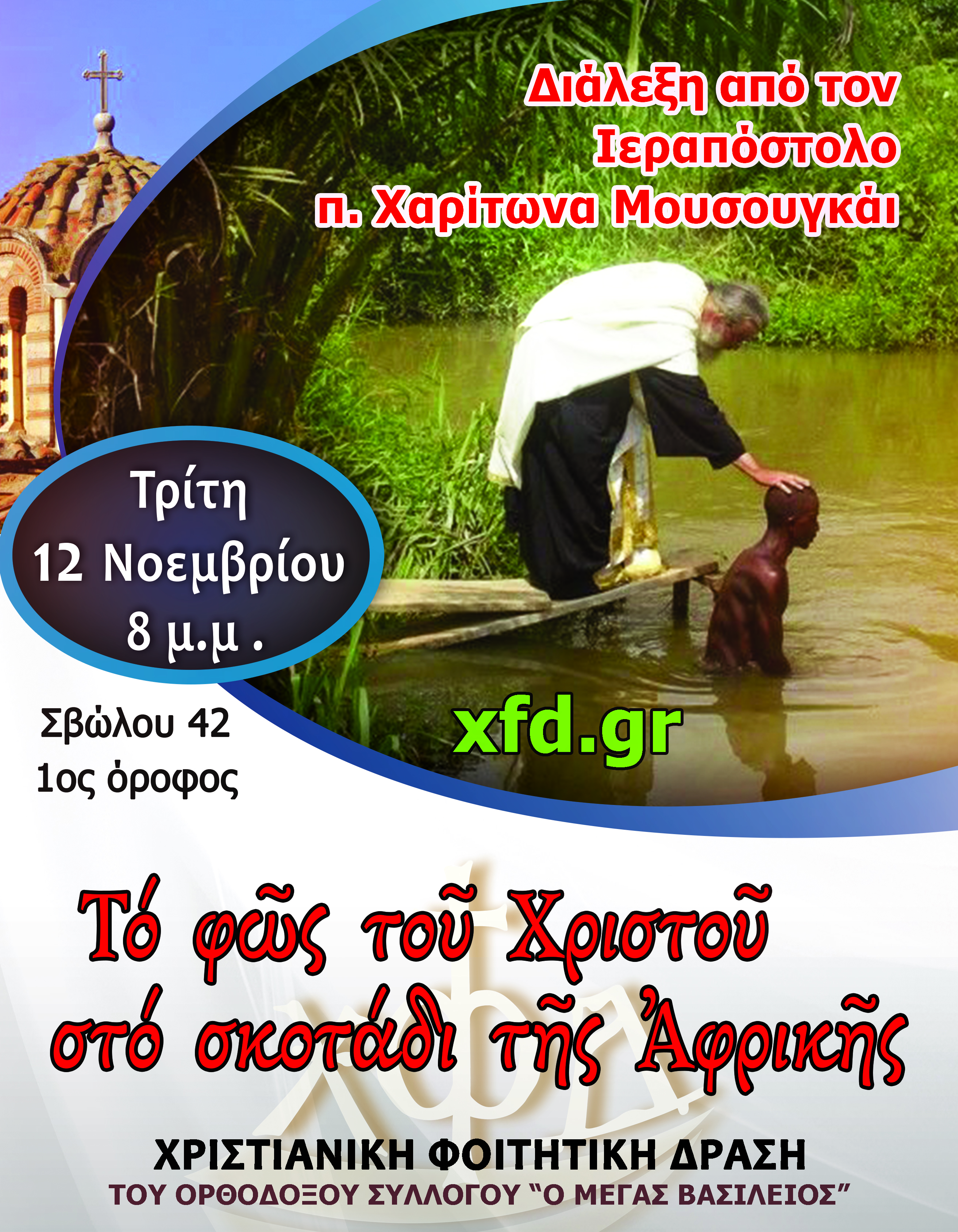 ΑνακοινώσειςΘεσσαλονίκη Το Φως του Χριστού στο σκοτάδι της Αφρικής Από φοιτητές - Θεσσαλονίκη - 7 Νοεμβρίου 2019 0 836 Εκτύπωση (καμία αξιολόγηση προς το παρόν) Loading...
