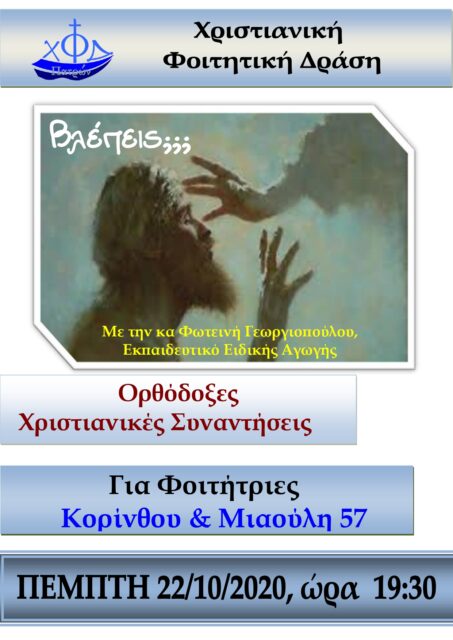 ΑνακοινώσειςΠάτρα ” Βλέπεις;;; “ Από φοιτήτριες - Πάτρα - 17 Οκτωβρίου 2020 0 825 Εκτύπωση (καμία αξιολόγηση προς το παρόν) Loading... Αυτή την Πέμπτη 22 Οκτωβρίου 2020 και ώρα 7.30 μ.μ. οι φοιτήτριες της Χ.Φ.Δ. Πατρών θα εξετάσουμε το αν βλέπουμε καθαρά!!!