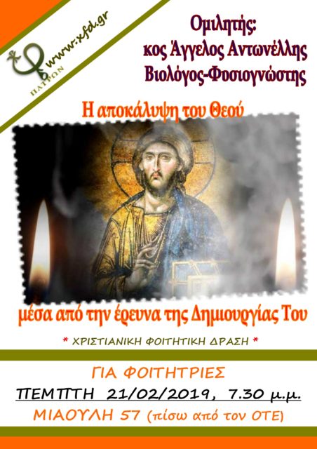 Αυτό το θέμα θα διαπραγματευτεί στη συνάντησή μας, αυτή την Πέμπτη 21-2-2019 ο κ.Άγγελος Αντωνέλλης, Βιολόγος-Φυσιογνώστης