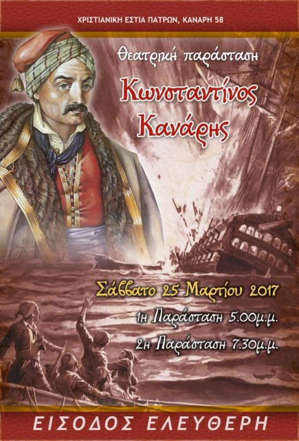 θεατρική παράσταση αφιερωμένη στην ηρωική μορφή του Κωνσταντίνου Κανάρη.