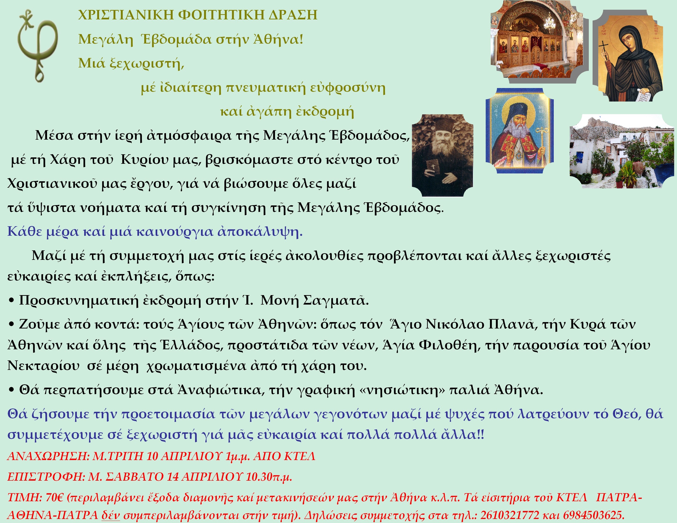 Πάντως, μου κάνει εντύπωση η επιλογή των ημερών γιατί όπως και να το κάνουμε η Μεγάλη Εβδομάδα δεν προορίζεται για γέλια και πανηγύρια που όσο να’ναι στις εκδρομές…αυτό επιβάλλεται!
