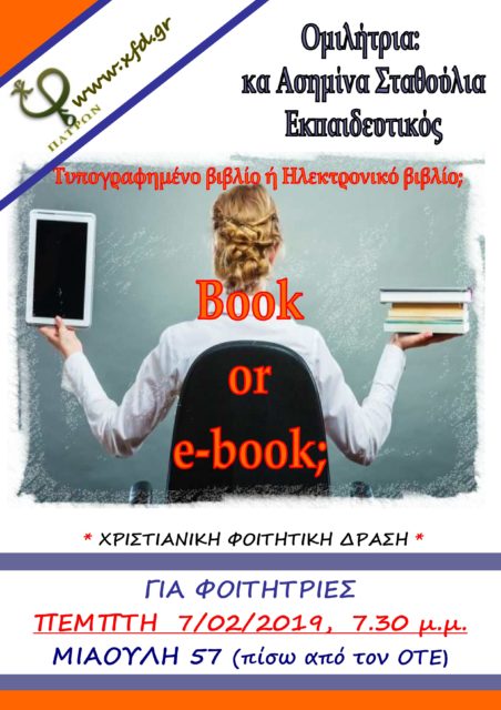 Αυτή την Πέμπτη 7 Φεβρουαρίου 2019 και ώρα 7.30 μ.μ. συζητούμε για παλιά… και νέα βιβλία χωρίς να ξεχνάμε το “βιβλίο της ζωής” μας!