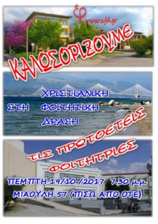 ΑνακοινώσειςΠάτρα Υποδοχή πρωτοετών! Από φοιτήτριες - Πάτρα - 15 Οκτωβρίου 2017 0 768 Εκτύπωση (καμία αξιολόγηση προς το παρόν) Loading... Την Πέμπτη 19 Οκτωβρίου 2017 και ώρα 7.30μμ. οι φοιτήτριες της Χ.Φ.Δ υποδεχόμαστε στη συντροφιά μας τα νέα μέλη της ΧΦΔ!!! Τις πρωτοετείς φοιτήτριες-αδελφές μας! (Στο εντευκτήριό μας, Μιαούλη 57, 3ος όροφος) Σας περιμένουμε!