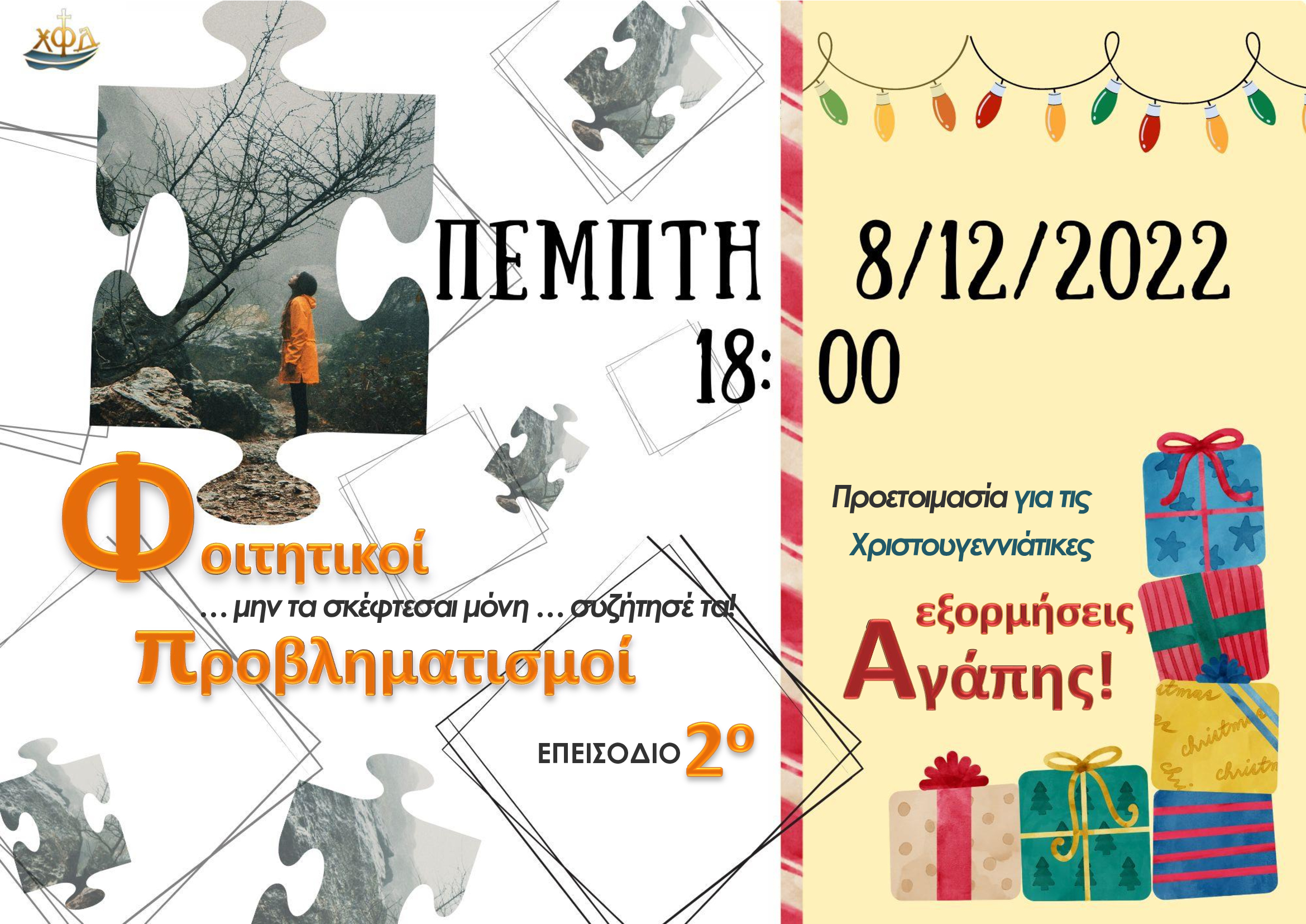 Αυτήν την Πέμπτη , 08/ 12/ 2022, στο εντευκτήριό μας , ώρα 18:00 – 20:00.