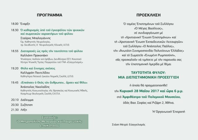 τη «Χριστιανική Ένωση Επιστημόνων» και τη «Χριστιανική Ένωση Εκπαιδευτικών Λειτουργών» του Συλλόγου «Ο Απόστολος Παύλος», την «Ανωτάτη Συνομοσπονδία Πολυτέκνων Ελλάδος» και το Σωματείο «Ενωμένη Ρωμηοσύνη», διοργανώνει