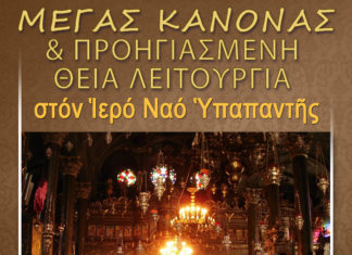 Στον Ιερό Ναό της Υπαπαντής την Τετάρτη 29 Μαρτίου