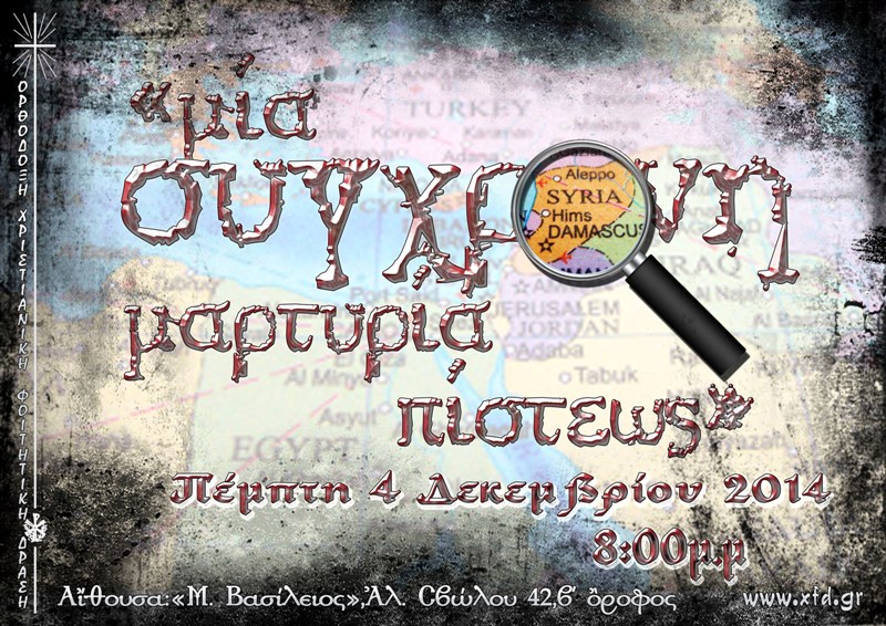 Τετάρτη 28 Ἰανουαρίου 2015, στίς 8 μ.μ. στήν Αἴθουσα Τελετῶν τοῦ Α.Π.Θ.