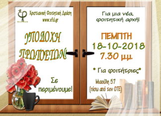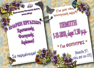 Πρώτη συνάντηση φοιτητριών! Πέμπτη 27-9-2018, ώρα 7.30μμ.