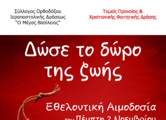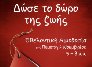 Εθελοντική αιμοδοσία την Πέμπτη 2 Νοεμβρίου 5-8 μ.μ. στο εντευκτήριο, στην Αλεξάνδρου Σβώλου 42, 1ος όροφος.