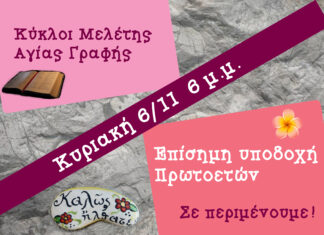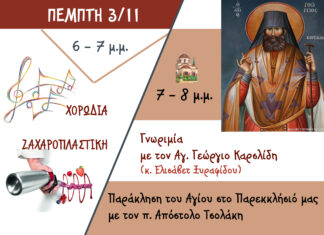 Ομιλία με θέμα «Τα αποτυπώματα των αγίων στο σύγχρονο κόσμο» τη Πέμπτη 10 Νοεμβρίου στις 8.00 μ.μ., στην Αλεξάνδρου Σβώλου 42 (Β’ όροφος).