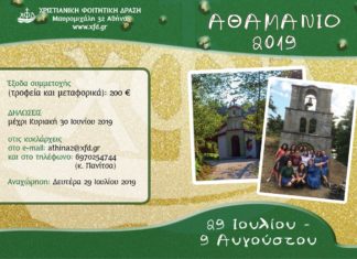 Την Κυριακή 29 Σεπτεμβρίου 2019, στις 7:00 μ.μ. οι φοιτήτριες της Χριστιανικής Φοιτητικής Δράσης Αθηνών θα έχουμε τον πρώτο μας κοινό Κύκλο μελέτης της...