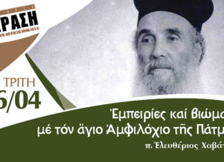 Ομιλητής: π. Ελευθέριος Χαβάτζας, μαθητής του αγίου Αμφιλοχίου