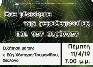 Κυριακή 19/05/2019 και ώρα 7:15 μ.μ. στη ΓΕΧΑ Αμπελοκήπων, οδός Μεγ. Σπηλαίου 4.