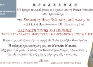Εκδήλωση τιμής και μνήμης στους σύγχρονους μάρτυρες της ορθοδοξίας μας!! Κυριακή 17 Δεκεμβρίου 2017 , 7:00 μ.μ. στη ΓΕΧΑ Αμπελοκήπων!!