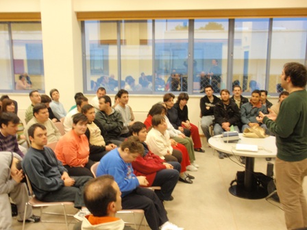 Ήταν πέντε το απόγευμα όταν φτάσαμε στην πύλη του Συνδέσμου. Οι υπεύθυνοί του μας υποδέχτηκαν με χαρά. Μπήκαμε μέσα στο κτήριο όπου βρίσκονταν τα παιδιά. Η υποδοχή που μας επιφύλαξαν έδειχνε πόσο ανάγκη είχαν έστω κι από μία απλή επίσκεψη και πόση χαρά μπορούσε να τους δώσει. Φτάνοντας στην κεντρική αίθουσα πολλοί ήλθαν χαμογελαστοί, μας χαιρέτησαν και μας συστήθηκαν.