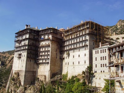 Ι. Μ. Σίμωνος ΠέτραςΗ μονή βρίσκεται στη νοτιοδυτική ακτή της χερσονήσου του Αθω. Χτίστηκε από τον ερημίτη όσιο Σίμωνα σε απόκρημνο βράχο, σε ύψος 230 μ. από τη θάλασσα στις αρχές του 14ου αι.