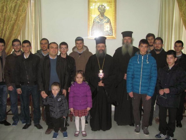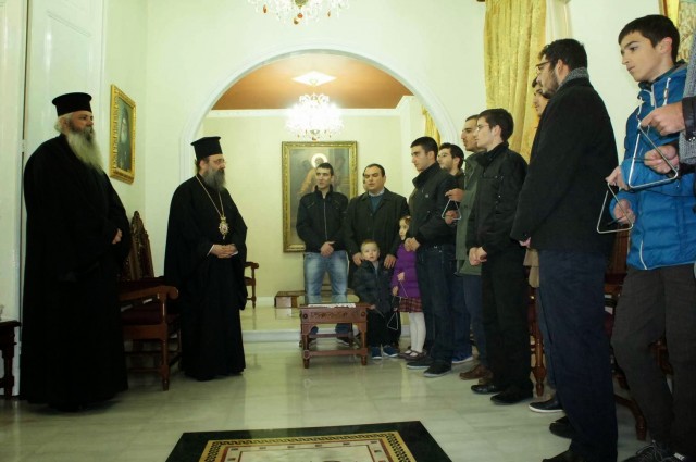 Στον Σεβασμιώτατο Μητροπολίτη Πατρών κ. Χρυσόστομο έψαλλαν τα χριστουγεννιάτικα κάλαντα οι νέοι της Χριστιανικής Εστίας Πατρών, φοιτητές και μαθητές, μέλη της Χριστιανικής Φοιτητικής Δράσεως και των Χαρούμενων Αγωνιστών, συνοδευόμενοι από τον Ιεροκήρυκα Αρχιμανδρίτη π. Χριστοφόρο Μυτιλήνη και τον κατηχητή των Χαρούμενων Αγωνιστών, κ. Ιατρού Γεώργιο. Ο Σεβασμιώτατος ευχαρίστησε τους συμμετέχοντες για την επίσκεψη και τους απηύθυνε ευχές για πρόοδο και υγεία στους ίδιους και τις οικογένειές τους.