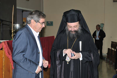 Σημειώνεται ότι ο κ. Περσεφόνης Πέτρος, μέλος Δ.Ε.Π., παρέδωσε στο Σεβασμιώτατο το σήμα του Πανεπιστημίου, στο οποίο εικονίζεται ο Αγ. Ανδρέας.