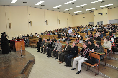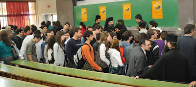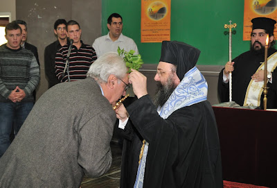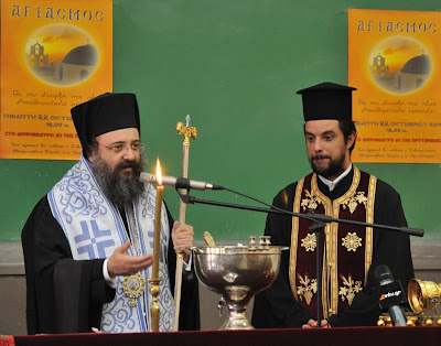 Πρωτοποριακή εκδήλωση στο Πανεπιστήμιο Πατρών. Με πρωτοβουλία των ορθόδοξων φοιτητικών ομάδων ετελέσθη και φέτος η ακολουθία του Αγιασμού για την έναρξη της ακαδημαικής χρονιάς. Τον αγιασμό τέλεσε ο Σεβ. Μητροπολίτης μας κ.κ. ΧΡΥΣΟΣΤΟΜΟΣ, συνοδευόμενος από τον π. Σεραφείμ και τον π. Στυλιανό, τους διακόνους του.